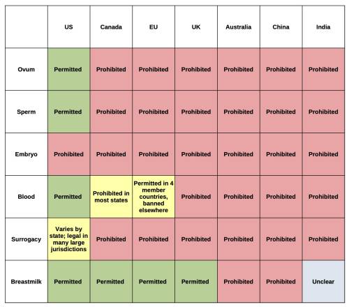 - A color-coded table indicating the legal status of commercial sale of several different kinds of human tissue and surrogacy services in several countries and jurisdictions. See `tissue-sale.pdf` for a textual version.