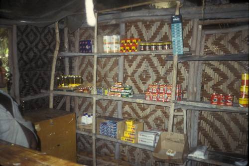 - The interior of a village store in Tambunum village, PNG, ca. 1988. Although made from local building materials and in some ways modeled on residences, storekeepers also try to create a milieu for shopping: a counter for orders and goods displayed on shelves, much as in town. A customer has to enter and hand over money to the owner before receiving goods, although many ask to buy on credit (dinau). Eric Silverman, 2014.